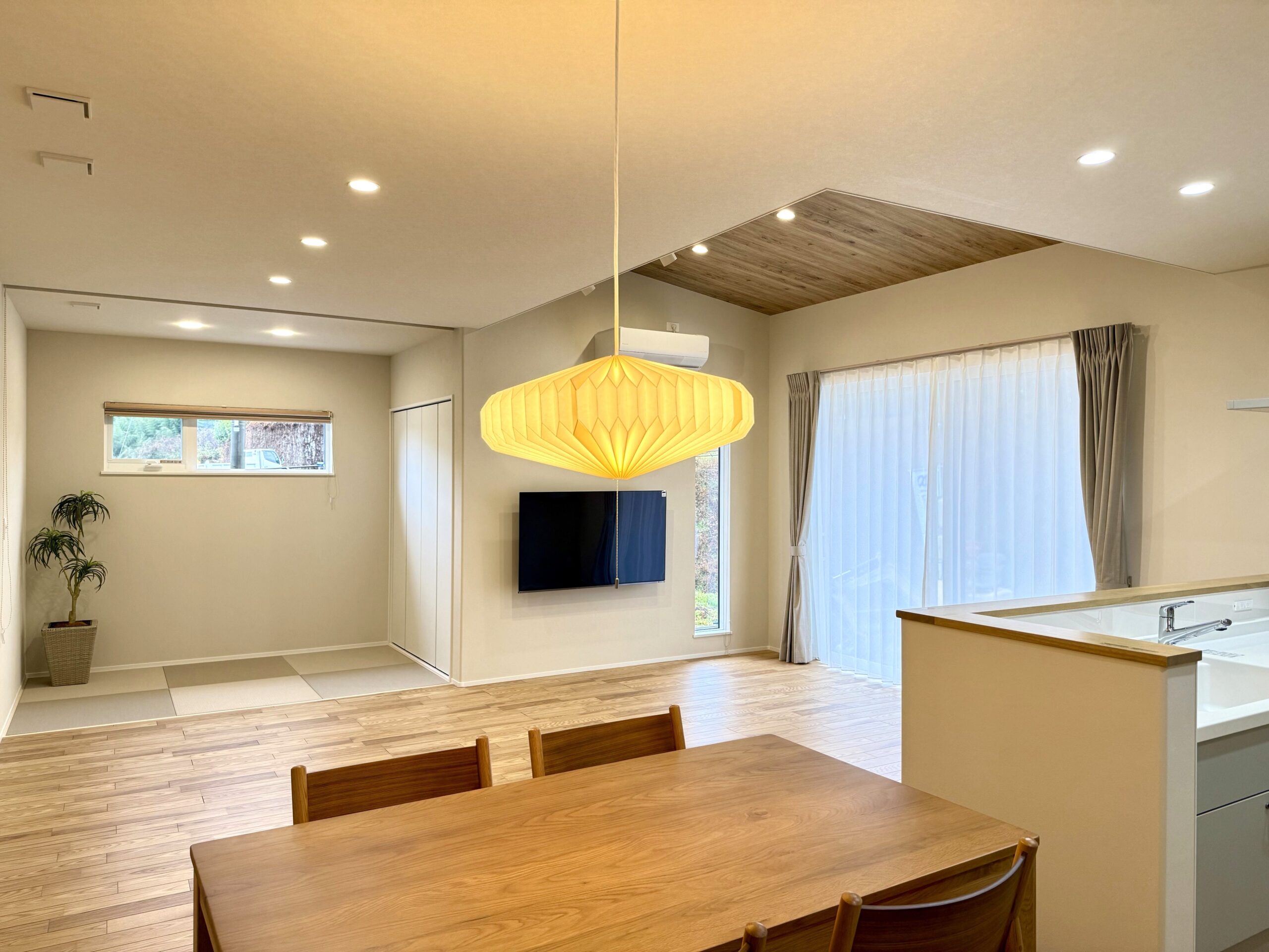 21帖の広いLDKに畳コーナーもあり、家族それぞれのくつろぎ方が広がります。