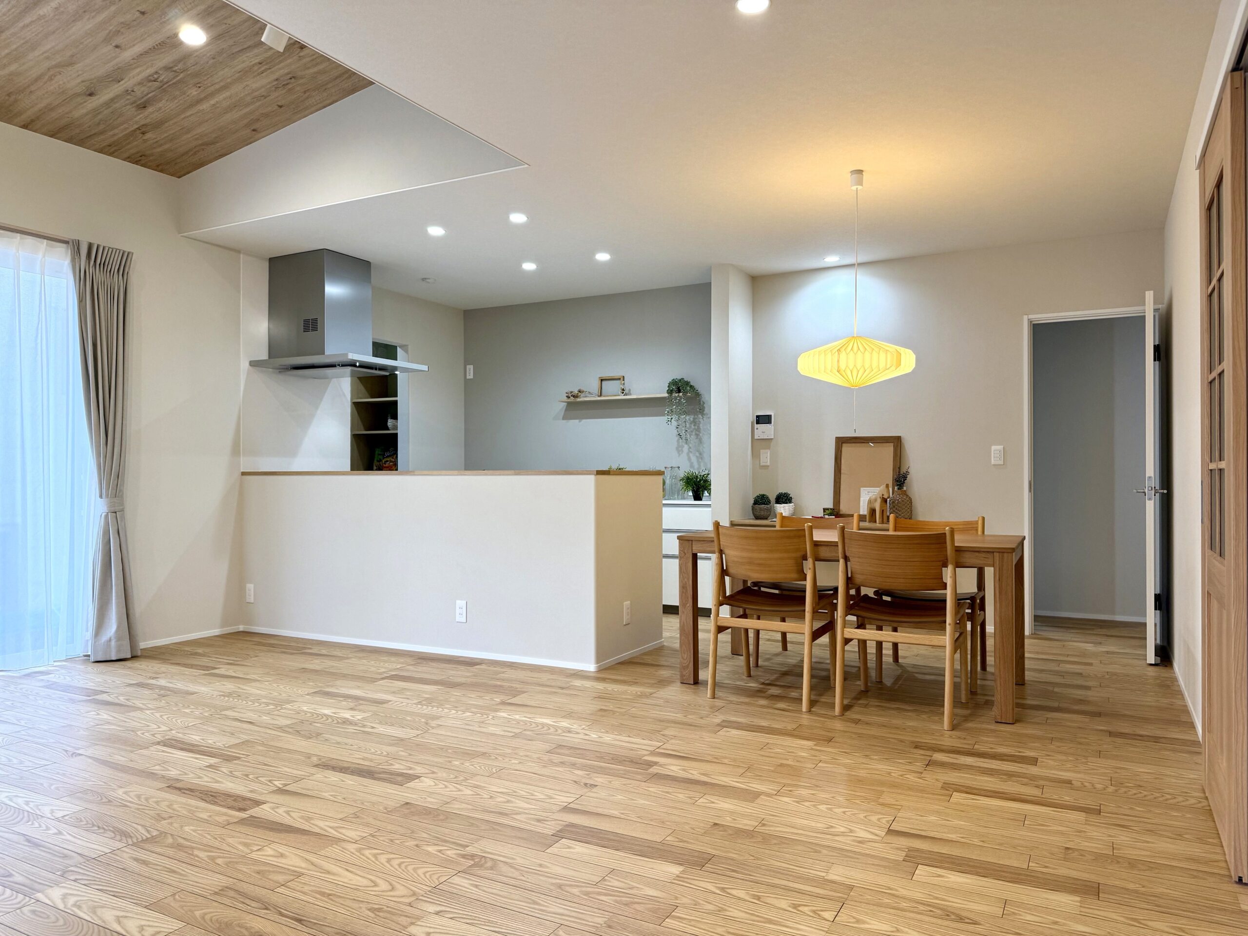 また、リビングは勾配天井と大開口窓で明るく開放的。