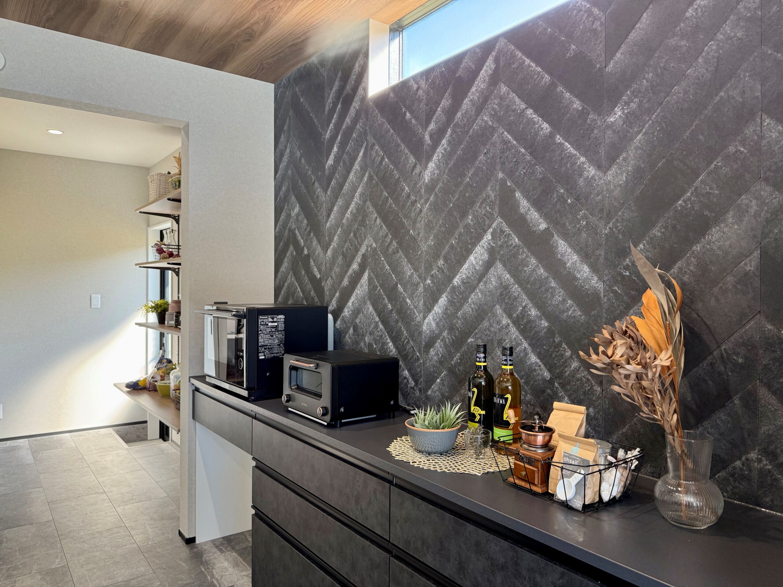 ウォークスルータイプのパントリーは洗面ホールからも出入り可能で、